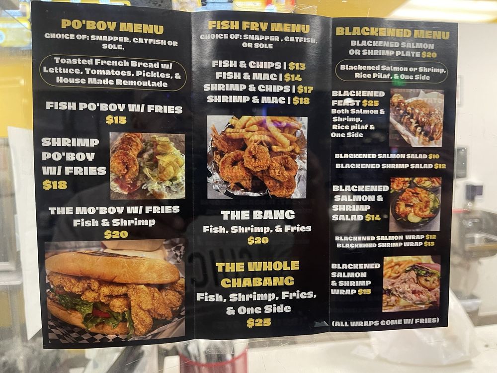 The menu is a seafood lover's dream, featuring crispy fried fish, savory Po'boys, and delectable sides like homemade potato salad and hush puppies. Highlights include their renowned Whole Chebang, packed with perfectly seasoned shrimp and fish, and the inviting warmth of outdoor seating, perfect for enjoying a meal with friends or family.